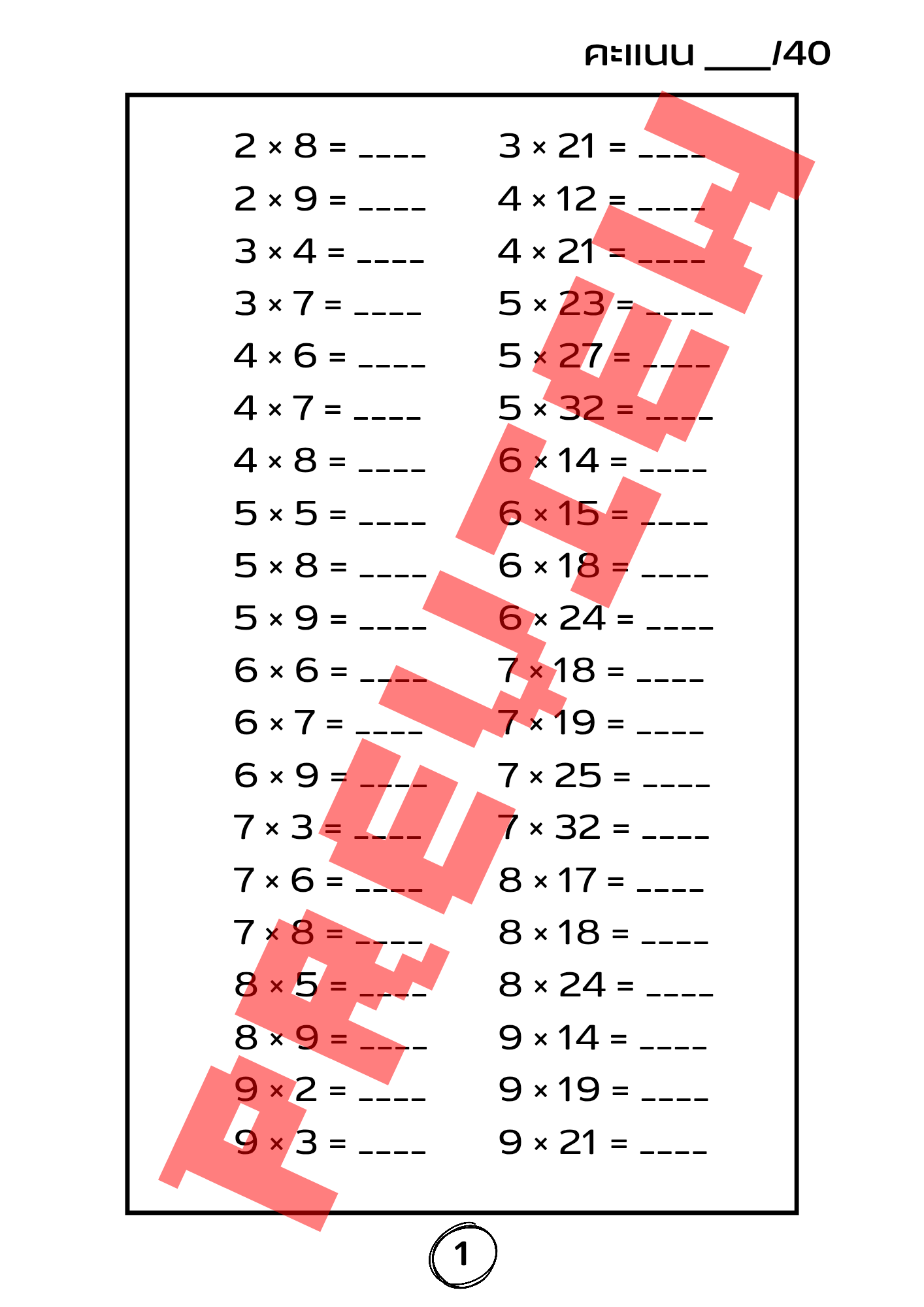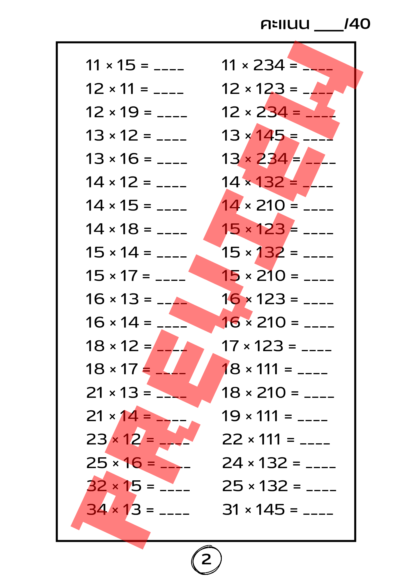 แบบฝึกหัดคูณเลขชุดนี้ออกแบบมาเพื่อช่วยพัฒนาทักษะการคำนวณของเด็กระดับประถมศึกษาอย่างเป็นระบบ 🧮