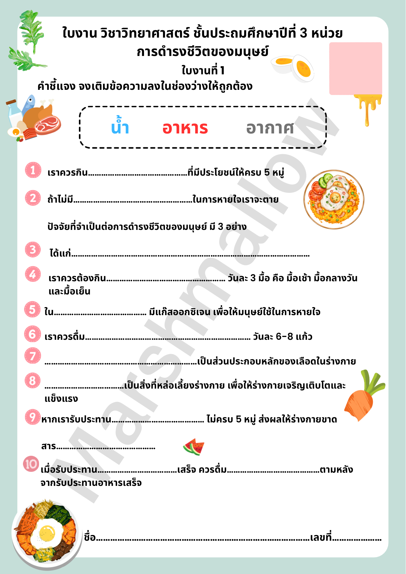 เป็นใบงานให้เติมคำลงในช่องว่าง