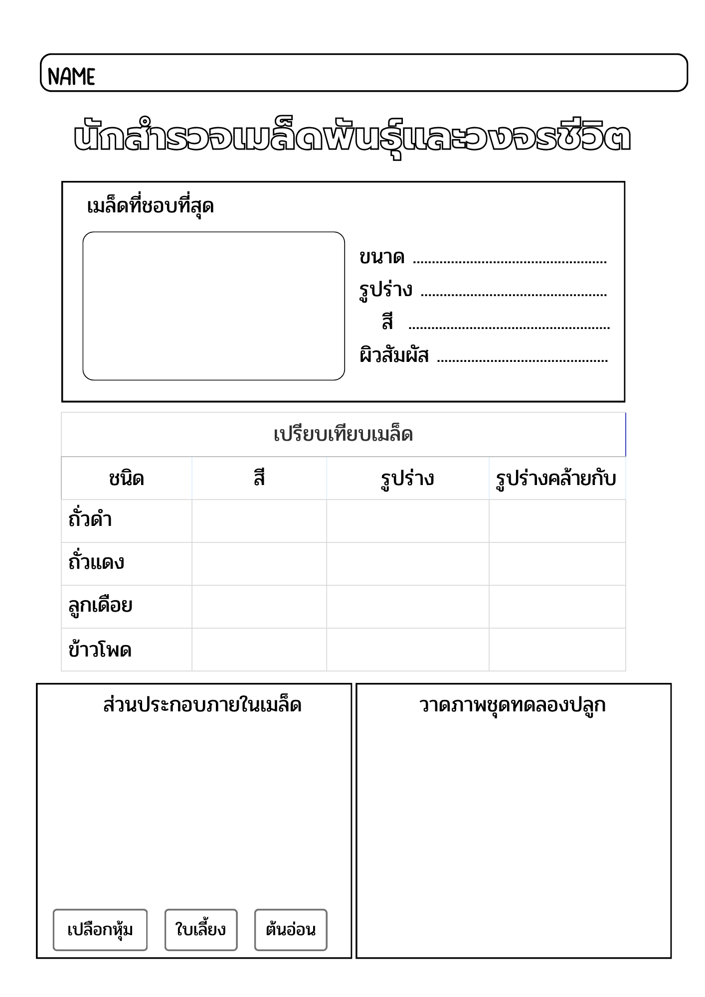 ใบงาน นักสำรวจเมล็ดพันธุ์และวงจรชีวิต